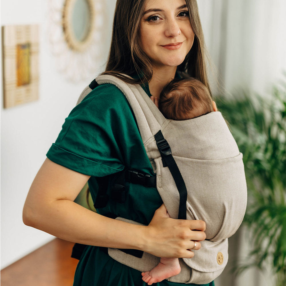 Very light & compact baby carrier. Minimum amount of straps, buckles & adjustment options for maximum comfort & safe babywearing